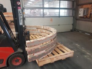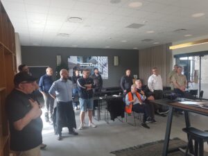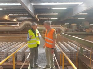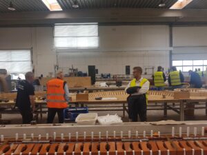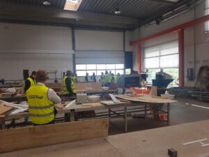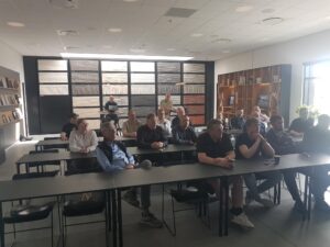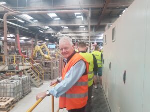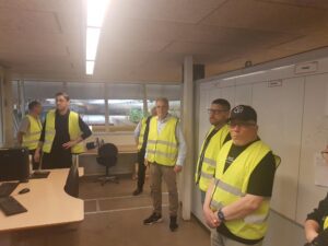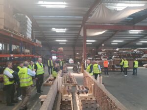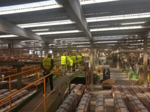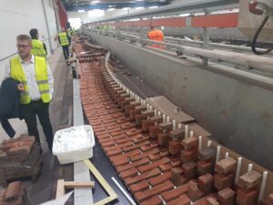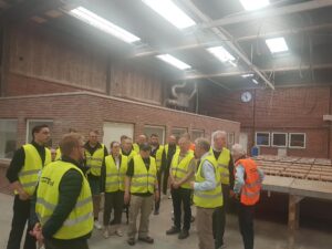 Efter introduktionen blev deltagerne vist rundt på det avancerede produktionsanlæg. Her blev der blandt andet kigget nærmere på de imponerende ovne, der når op på omkring 1.000 grader, og ikke mindst de specialfremstillede murstensoverliggere – et imponerende håndværk med præcision og styrke i fokus.