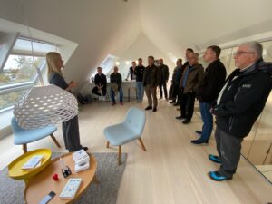 Dagen begyndte med en præsentation af VELUX og virksomhedens historie – fra de første ovenlysvinduer til nutidens innovative og bæredygtige løsninger. Derefter blev deltagerne fordelt på tre rundvisninger, hvor der var fokus på både produktion, udvikling og den imponerende VELUX Collection, som viser virksomhedens rejse gennem tiden.